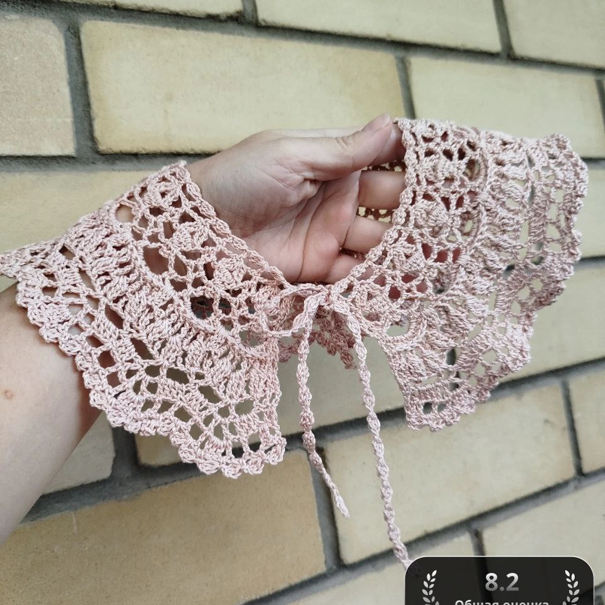 Изящный вязаный воротник прекрасно выполнен с использованием сложных узоров. Нежный розовый оттенок и кружевной узор придают ему утонченность и изящество, идеально подходящие для завершения любого топа или платья. Такой аксессуар не только выделит вас, но и придаст индивидуальный стиль вашему гардеробу.