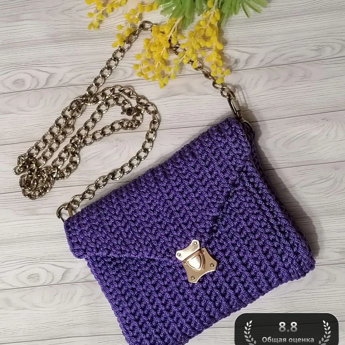 Эта изящная сумочка-конверт сразу привлекает взгляд глубоким фиалковым оттенком и выразительной текстурой «рисового» узора, выполненного крючком. Объёмные петельки создают плотное полотно, которое держит форму даже без жёсткого каркаса. Клапан аккуратно подчёркнут диагональной линией убавок и украшен элегантной металлизированной защёлкой в винтажном стиле, а массивная цепочка цвета старой бронзы придаёт модели чуть дерзкий городской характер. Сочетание блеска фурнитуры и сатинового отблеска шнура делает аксессуар универсальным как для дневного, так и для вечернего выхода.