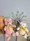 Дуэт уютных вязаных медвежат в нежной пудрово-розовой и молочной гамме смотрится очень «подарочно»: атласные банты добавляют праздничности, а классическая форма делает игрушки узнаваемыми и милыми. Лицевая гладь в целом аккуратная, набивка держит силуэт, мордочки выразительные. При близком рассмотрении заметна разница в плотности полотна и лёгкая «ступенька» на местах пришива деталей, но в кадре работа выглядит аккуратно и очень привлекательно.