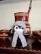 Очаровательный пингвинёнок в серо-лиловой шапочке и длинном шарфе — тёплый, «зимний» образ с милой мультяшной подачей. Аккуратная лицевая гладь на белой мордочке хорошо держит форму, глазки посажены ровно и создают выразительный взгляд, красный клювик даёт удачный акцент. Вязаные аксессуары добавляют объёма и фактуры, образ читается сразу. Есть немного рыхлости/пушистости на чёрных деталях и лёгкая неровность в набивке, но в целом игрушка выглядит опрятно и приятно.