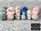 На фото — очаровательный набор из 6 вязаных пингвинчиков (игрушки), каждый в своей шапочке с помпоном и шарфике. Тельца выполнены ровной чулочной гладью серо-белых оттенков, мордочки аккуратно оформлены крупными глазками и яркими оранжевыми клювиками. Шапочки связаны резинкой и лицевой гладью, шарфики — мягкие, местами пушистые (особенно розовые), с кисточками/бахромой. Композиция смотрится дружно и «по-зимнему», цвета подобраны гармонично.