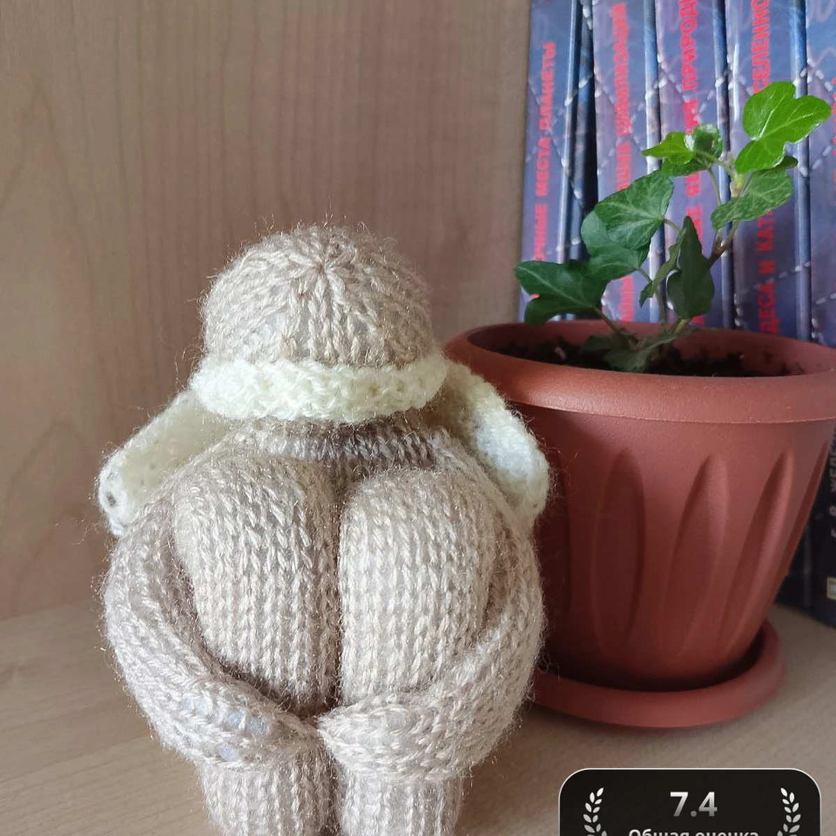 Милый «уставший ангел» связан из мягкой бежевой пряжи и выполнен в забавной позе — крохотные ручки обнимают колени, крылышки уютно сложены за спиной. Куполообразная голова украшена аккуратной макушкой со звёздчатым убавлением, а фактурная резинка на телце создаёт ощущение уютного вязаного свитера. Крылышки вывязаны из белоснежной полушерстяной нити платочной вязкой, благодаря чему они пушисто контрастируют с гладким джемперным телом. Мягкая, слегка волосистая пряжа придаёт игрушке нежный, тёплый вид, а лаконичная цветовая гамма подчёркивает её трогательную задумку — ангел действительно выглядит сонным и умилительно расслабленным.