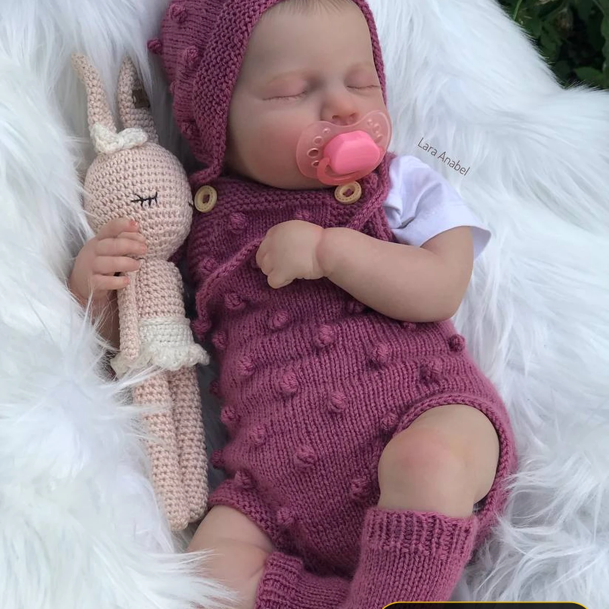 На фото чудесный набор для новорождённого в пыльно-розовом цвете: шапочка-капор с объёмными «шишечками», короткий комбинезон-ромпер из той же пряжи, носочки и очаровательная амигуруми-зайка в кремово-розовом. Аккуратная лицевая гладь сочетается с равномерными выпуклыми элементами, создающими игривую текстуру. Деревянные пуговки добавляют тёплого рустикального шарма, а мягкая полушерсть выглядит уютно и нежно на фоне пушистого белого пледа. Всё выполнено очень ровно, без затянутых петель и перекосов, что подчёркивает высокий уровень мастерства и заботу о малыше.