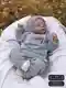 На изображении представлено уютное вязание для младенца: комбинезон и шапочка, выполненные в светло-сером цвете. Комплект украшен оригинальными выпуклыми узорами, напоминая классический стиль. Это идеальный выбор для прохладной погоды, чтобы держать маленького ребенка в тепле и комфорте.