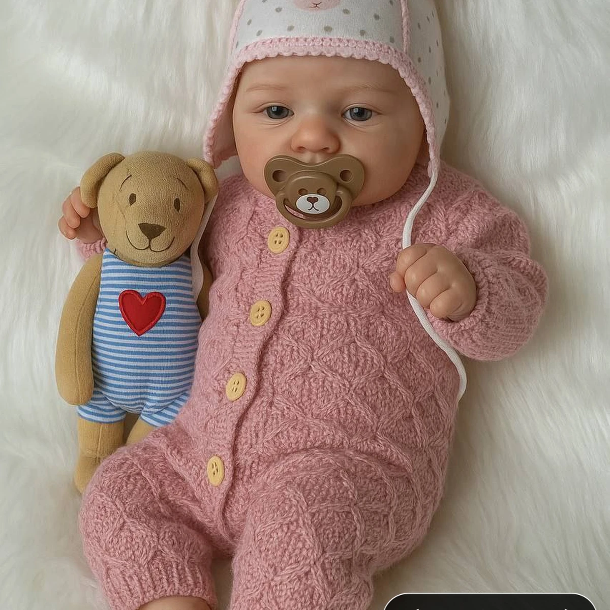 На этой фотографии мы видим великолепный вязаный комплект для малыша, включающий красивый розовый комбинезон и очаровательную шапку с ушками. Эти вещи превосходно исполнены и отлично подходят для защиты малыша в прохладную погоду. Комбинезон с пуговицами на передней части выполнен с особым вниманием к деталям, а шапочка добавляет милое очарование благодаря своим ушкам.
