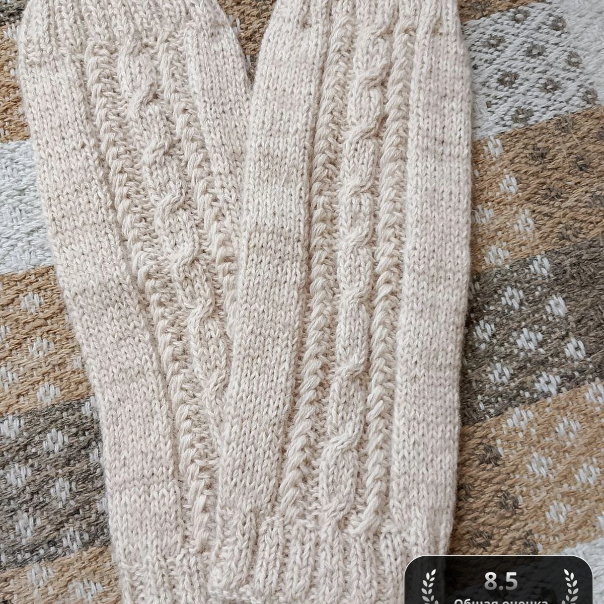 • Пряжа: шерсть с акрилом, мягкая, кремового цвета, около 200 грамм.