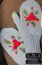 Для создания этих варежек использована классическая техника вязки по кругу с использованием пяти спиц. Начинается работа с манжет, используя резинку 1х1, которая обеспечивает отличную прилегаемость к запястью, сохраняя тепло. Основная часть варежки выполнена лицевой гладью, что делает её элегантной и уютной. В центре композиции выделяется вышивка, выполненная гладью. Красные розы добавляют яркости, контрастируя с нейтральным фоном. Использование таких техник вышивания, как французский узелок и стебельчатый шов, преобразует простую модель варежек в произведение искусства. Готовое изделие скрывает швы, что придаёт изделию завершённый вид. Такая структура не только эстетически приятна, но и функциональна, предотвращая продувание сильными зимними ветрами.