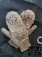 Пара уютных варежек связана гладкой лицевой гладью из нежной бежевой пряжи и щедро расшита россыпью золотистых пайеток, которые мерцают при каждом движении. Эластичная резинка на запястье обеспечивает плотное прилегание и защищает от ветра, а мягкое основное полотно выглядит объёмным и тёплым. Пайетки разных оттенков золота, изредка проскальзывающие зелёные и розовые искорки, создают праздничное настроение и подчёркивают благородство натурального цвета пряжи. Варежки смотрятся одновременно изысканно и игриво — идеальный акцент к зимнему образу.